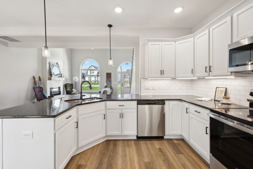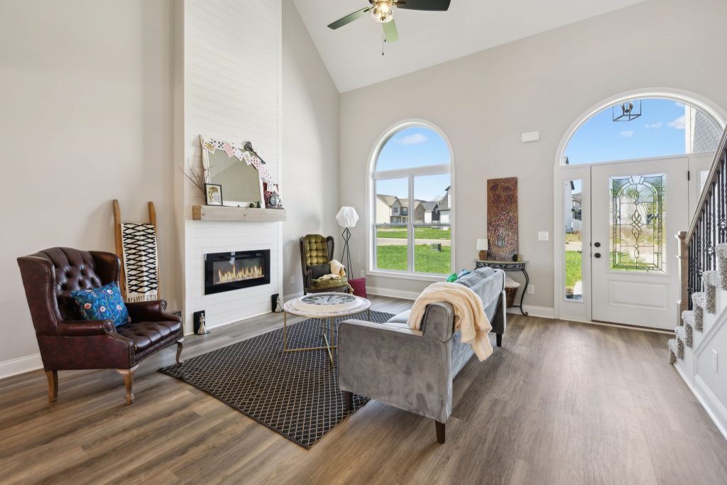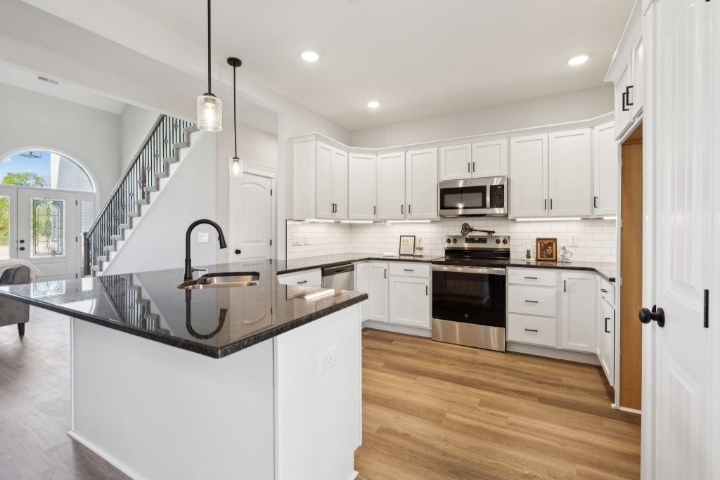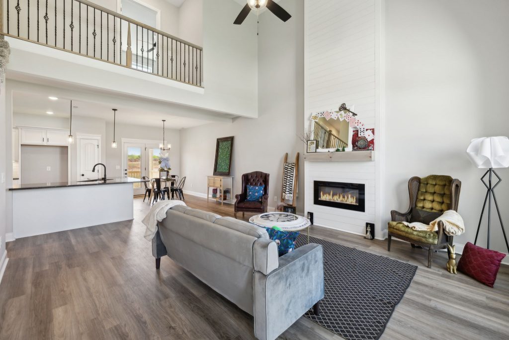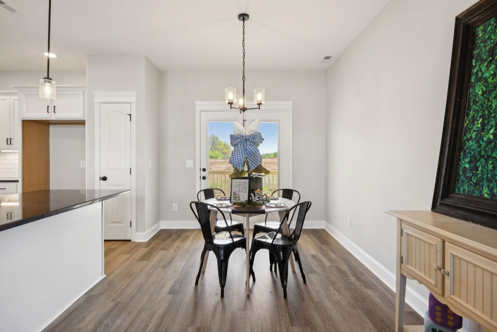 Welcome to this stunning new construction featuring the ‘Brewster’ floor plan with 5 bedrooms, and 2.5 bathrooms, situated on a level lot. The large main-level Primary Suite offers convenience and privacy, while the open-concept living area showcases an electric fireplace with a stylish shiplap finish. The kitchen is a chef’s dream, featuring ample counter space, under cabinet lighting, and granite countertops with views of the living and dining spaces. Just off the dining, you have easy access to a covered deck. With beautiful accent lighting, illuminating your way to the second level, and thoughtful design throughout, this home highlights Darnell Construction’s signature attention to detail.Â