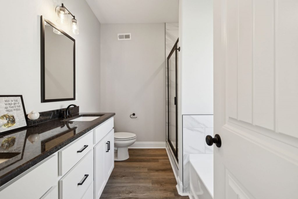 - Primary Bedroom: double vanities, separate shower and garden tub, water closet.
