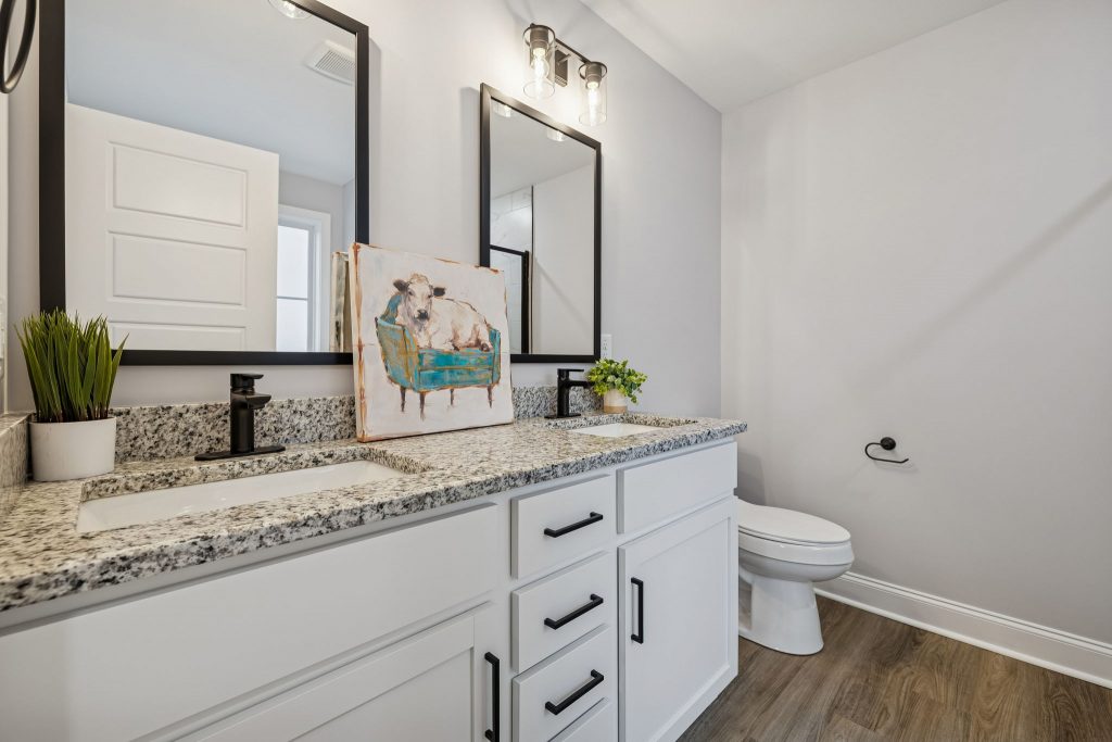 - Primary Bedroom: double vanities, separate shower and garden tub.